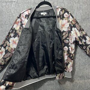 Solitaire By Ravi Khosla Jacket XL Lightweight Floral Zip Up Bomber