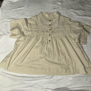 This cream blouse from Solitaire features a boxy silhouette with a mandarin collar and short sleeves, offering a chic and versatile addition to your wardrobe. The smocked detailing adds a touch of elegance, making it perfect for both casual and formal occasions.