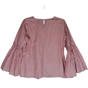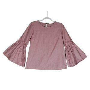 Solitaire Dark Pink Pinstripe Bell Sleeve Blouse Sz S Cotton Blend Flared