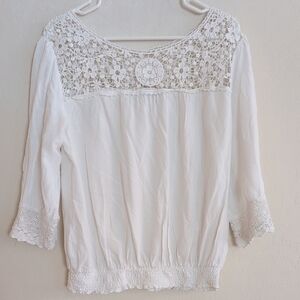 Solitaire Elegant White Lace Women's Top - Size L