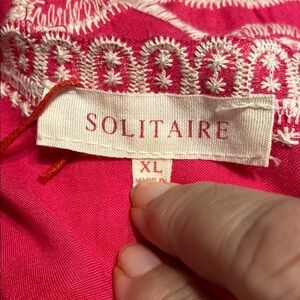 This stunning blouse from Solitaire features a charming pink and white color scheme with sweet embroidered bell sleeves. The embroidered and ruffled design adds a touch of sophistication, making it ideal for both casual and formal occasions.