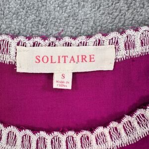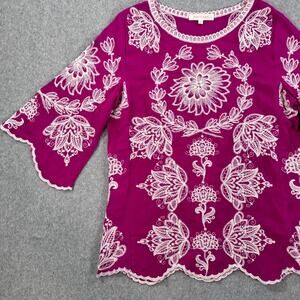 Solitaire Embroidered Scallop Blouse Women's Small 3/4 Sleeve Fuchsia Floral
