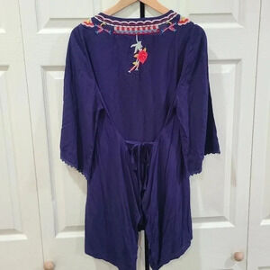 Solitaire Embroidered Swing Tunic Crotchet Sleeve Ties In Back Navy Size Large