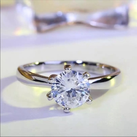 This beautiful engagement ring features a stunning 3 carat round cut cubic zirconia stone set in a classic solitaire setting. The band is plated in higher quality white gold. The ring is perfect for any special occasion, whether it be an engagement, wedding, or just a gift for that special someone.