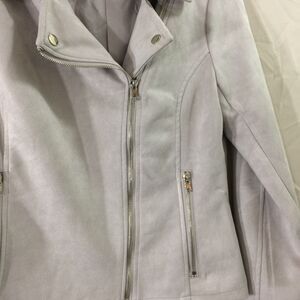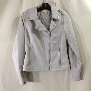 Solitaire Faux Suede Moto Jacket Gray Zip Front Size Small 2 Pockets Soft