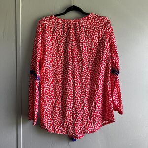 Solitaire Floral Embroidered Blouse Top Red White Blue Boho Casual - Small