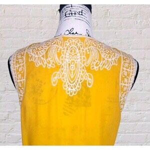 Solitaire Floral Embroidered Tunic Tank Top Womens SM Yellow Blouse Boho Cottage