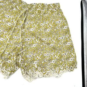Solitaire Gold Floral Eyelet Trim High Rise Elastic Waistband Shorts Wmns Large
