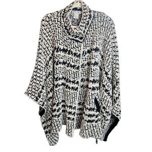 Solitaire Jacket Shawl Pancho Ribbed Texture Black and White Front Pockets XL