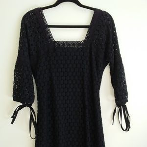 Solitaire Cotton and Polyester Lace Dress Medium. Black. Shoulder to Hem Approximately 35". Machine Washable.