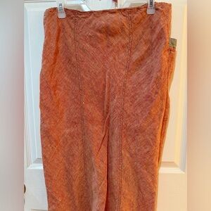 Elegant rust linen skirt. Ideal for versatile wear. W 16/32 L 29 Hip 19