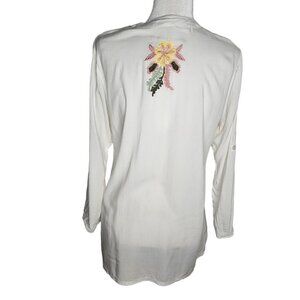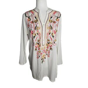Solitaire Medium Top Cottagecore Embroidered Floral Tunic White Multi-Color