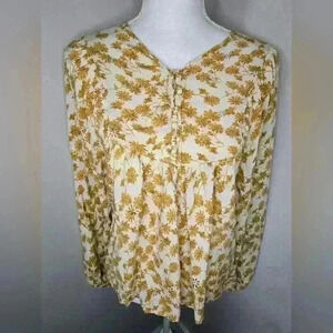 Solitaire Metallic Gold Floral Bohemian Blouse Size Small In Excellent Condition