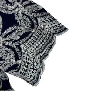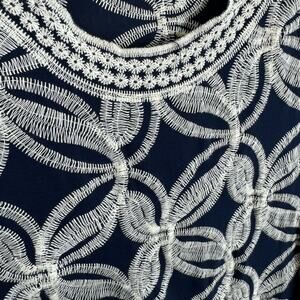 Solitaire Navy Blue White Embroidered Rayon Short Sleeve Pullover Blouse Size 1X