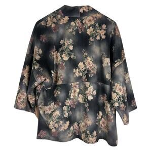 Solitaire Open Front Jacket Womens M Gray Faux Suede Floral Boho Cottagecore