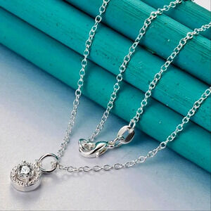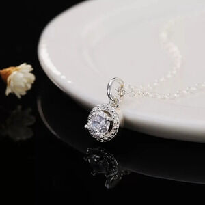 Solitaire Pave Diamond Pendant Necklace | 18k Gold Plated