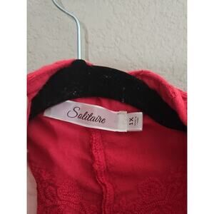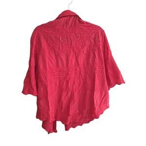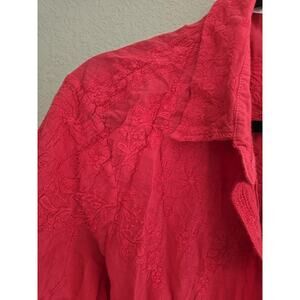 Solitaire Pink Embroidered Floral Short Sleeve Button Front Top Womans Size 1X. Pre-owned