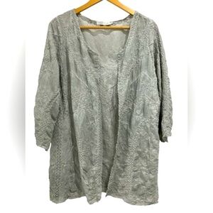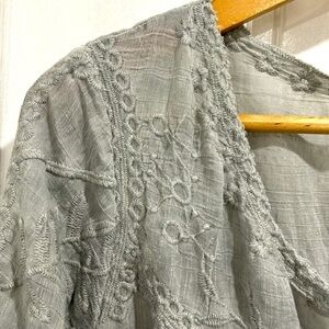 Style profile: embroidered boho flowy open front duster jacket lightweight cotton blend gray silver plus kimono layer neutral