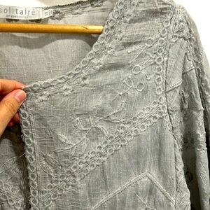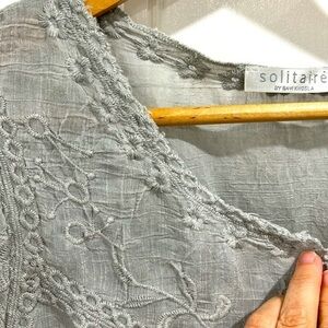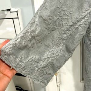 Solitaire Silver Gray Embroidered Cotton Blend Lightweight Duster Kimono Jacket