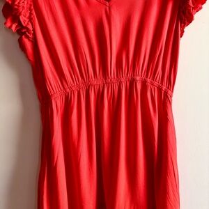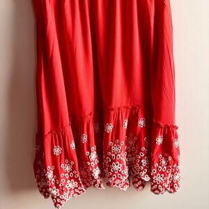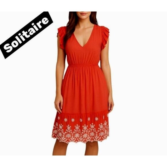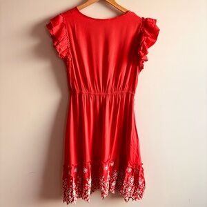 Solitaire Size M coral orange red eyelet floral dress with ruffle sleeves