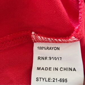 Color: Red (sometimes described as coral or chili red) with white embroidery