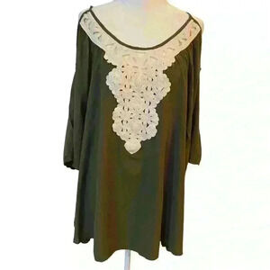 Solitaire Swim Cold Shoulder Swimsuit CoverUp Size S Olive Green w Embroidery