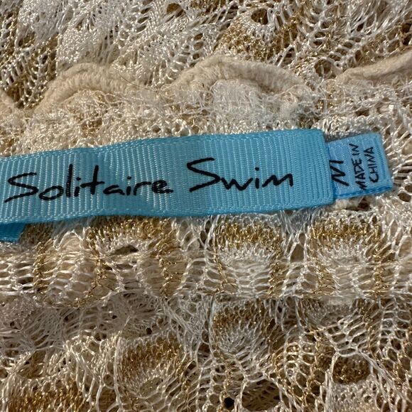 Solitaire Swim Coverup Size M Ivory Tan Gold Crocheted Long Sleeve Dress Beach