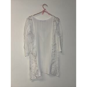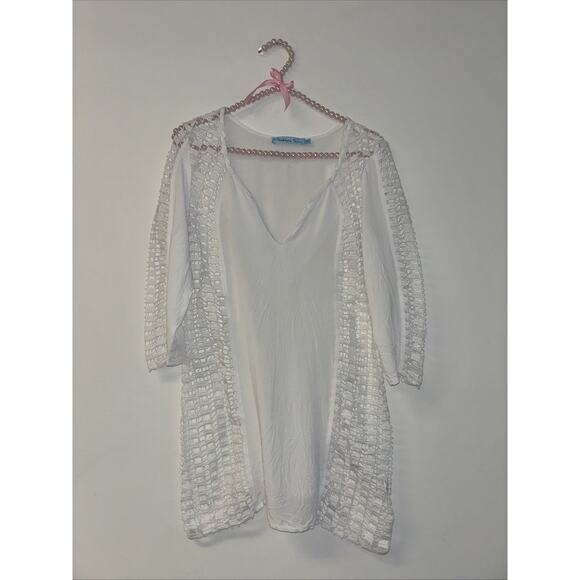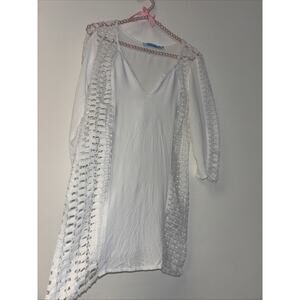 Solitaire Swim Eyelet Cover up White Boho V Neck Sz Small Swim Suit Dress Beachy
