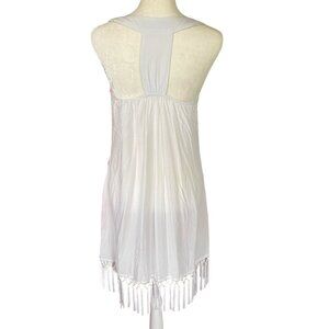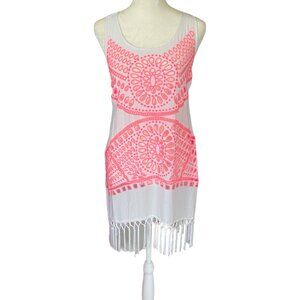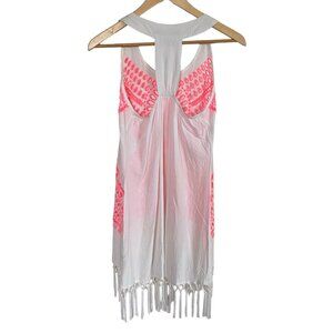 Solitaire Swim women's small pink and white racerback fringed swimsuit cover-up