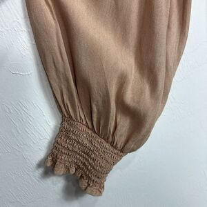 Solitaire Tan Balloon Sleeve Floral Embroidered Crochet Boho Blouse Size L