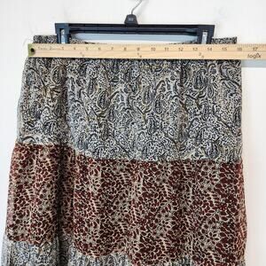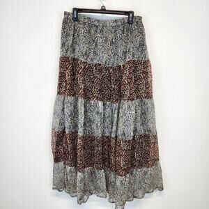Solitaire Tiered Broomstick Maxi Skirt Size L Paisley Chiffon Lined Cottage Boho