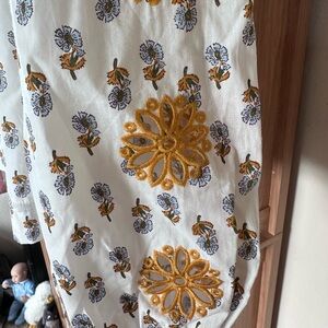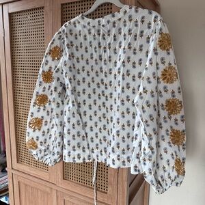 Cute floral top. Lightweight. Cutouts on arms. Green blue and mustard yellow