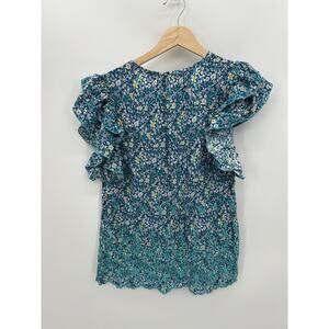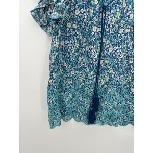 Solitaire Top Women Blue Floral Ruffle Sleeve Boho Feminine Tassels Size Medium