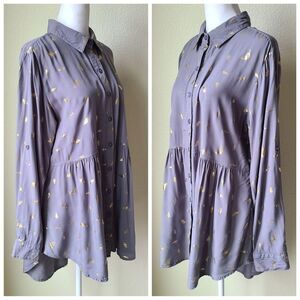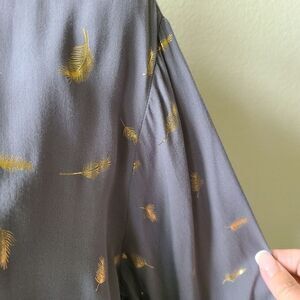 Beautiful Solitaire Baby Doll Tunic / Top / Blouse with Gold Leaves, Oversized and Roll Tab Sleeves
