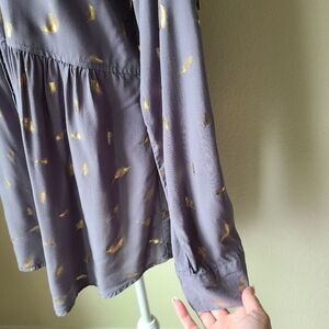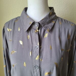 Solitaire Tunic Medium Baby Doll Gold Leaves Oversized Roll Tab Sleeve