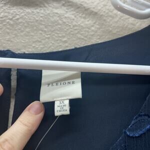 Solitaire Tunic Top Sz 3X Blue Floral Burnout Flutter Sleeves Boho Tiered Peplum sheer sleeves