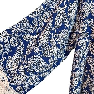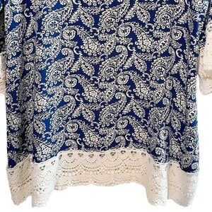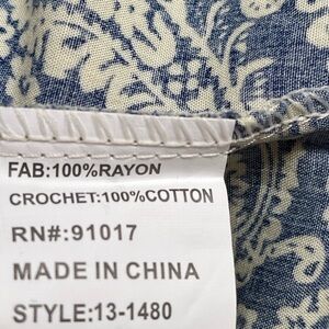 Solitaire V-Neck Crotchet Multiprint Blue and Cream Top L