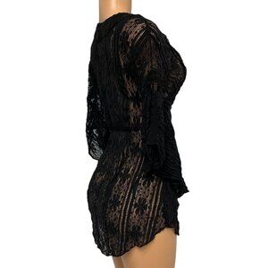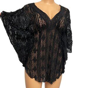 Solitaire by Ravikhosla women's black lace sheath blouse knit V-neck and butterfly sleeves, size Small.