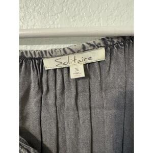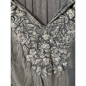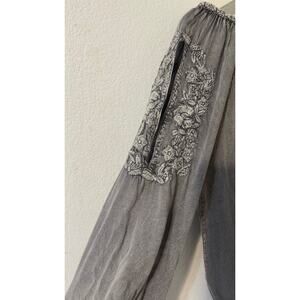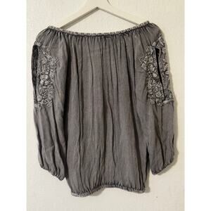 Solitaire Women's‎ Blouse Gray Embroidered Top Open Sleeves Size Small