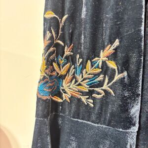 Solitaire Womens Boho Top Dusty Blue Small Velvet Floral Embroidered Bell Sleeve