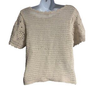 Solitaire Womens Crochet Knit Crop Top Size Small Ivory Floral Boho