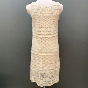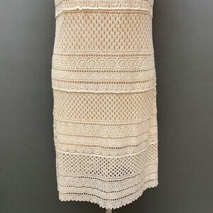 Solitaire Women's Dress Medium Beige Crochet Sleeveless 2 Piece