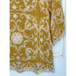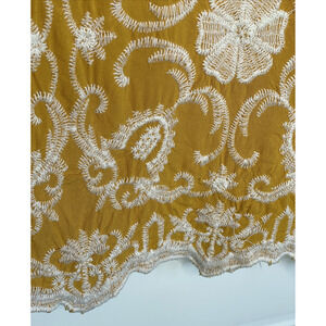Solitaire Women's Embroidered Floral Blouse Sz M Scallop Hem Peasant Ornate Boho