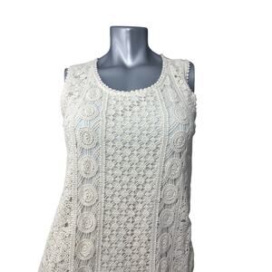 Solitaire Womens Ivory Cream Crochet Sleeveless Top Medium Tank Lace Cottage