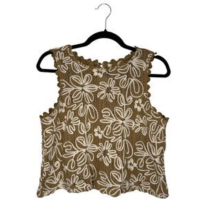 Solitaire Women’s Large Sleeveless Embroidered Top Crochet Scalloped Edge Boho