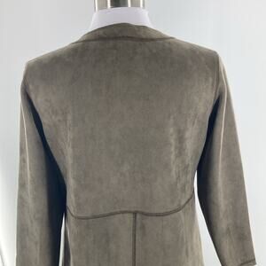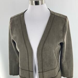 Solitaire Womens Olive Green Microsuede Open Front Jacket Size Small New