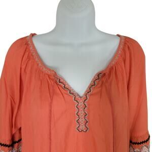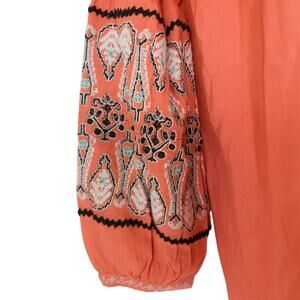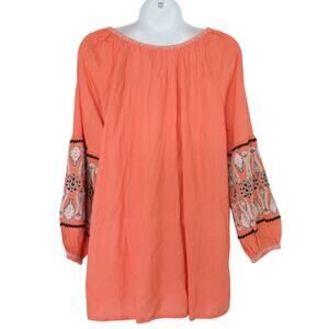 Solitaire Womens Top Small Embroidered Boho Peasant Shirt Coral Long Sleeve