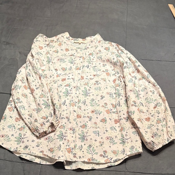 Women’s Solitaire button down cotton/poly blend eyelet shirt size L measurements in pics.