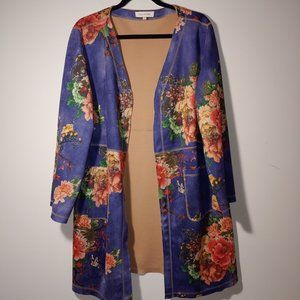 Solitaire by Anthropology Floral Long Open Front Cardigan Size XL Blue