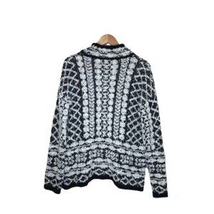Solitaire by Ravi Khosla Sz L Sweater High Neck Chunky Knit Pullover Black White